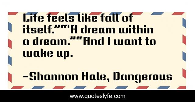 This page presents the quote "Life feels like fall of itself.”“'A dream within a dream.”“And I want to wake up.". Author of this quote is Shannon Hale, Dangerous. This quote is about life, dream, dreams,.