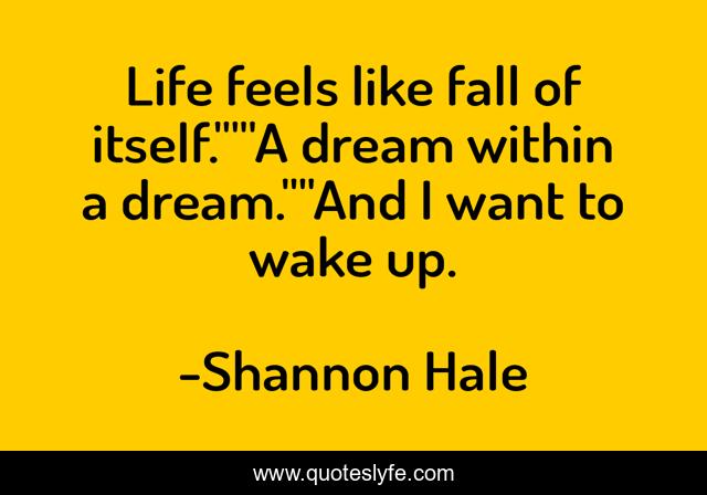 This page presents the quote "Life feels like fall of itself.""'A dream within a dream.""And I want to wake up.". Author of this quote is Shannon Hale. This quote is about life, dream, dreams,.