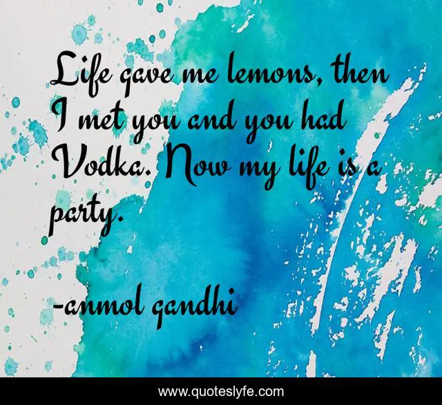 This page presents the quote "Life gave me lemons, then I met you and you had Vodka. Now my life is a party.". Author of this quote is anmol gandhi. This quote is about funny-but-true, inspirational, enthusiasm,.