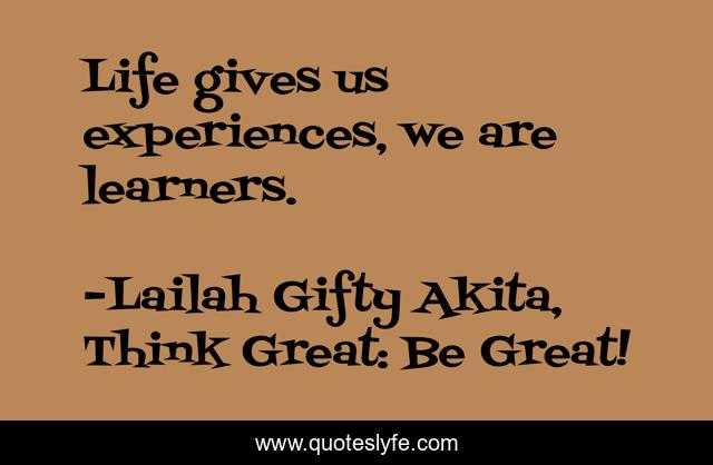 "Lailah Gifty Akita, Think Great: Be Great! Quotes." Quoteslyfe.com, 2025. Sun. 07 Dec. 2025. <https://www.quoteslyfe.com/quote/Life-gives-us-experiences-we-are-learners-116159>.