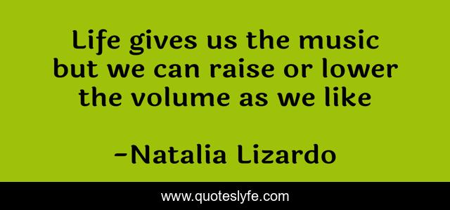 This page presents the quote "Life gives us the music but we can raise or lower the volume as we like". Author of this quote is Natalia Lizardo. .
