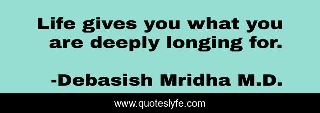 This page presents the quote "Life gives you what you are deeply longing for.". Author of this quote is Debasish Mridha M.D.. This quote is about longing, life, philosophy, debasish-mridha, quotes, inspirational, enthusiasm, deeply-longing-for, debasish-mridha-m-d,.
