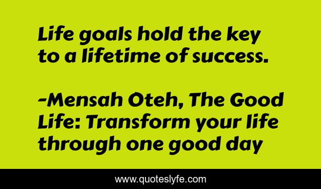 "Mensah Oteh, The Good Life: Transform your life through one good day Quotes." Quoteslyfe.com, 2025. Mon. 08 Dec. 2025. <https://www.quoteslyfe.com/quote/Life-goals-hold-the-key-to-a-15810>.