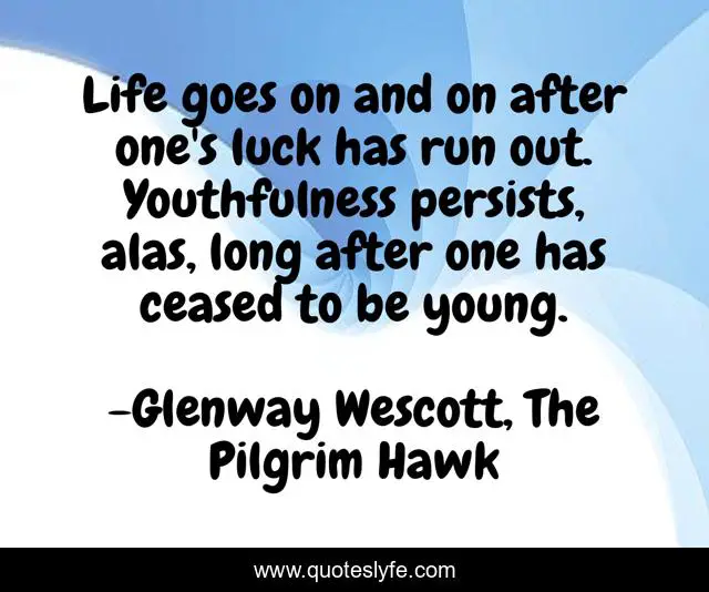 "Glenway Wescott, The Pilgrim Hawk Quotes." Quoteslyfe.com, 2025. Fri. 05 Dec. 2025. <https://www.quoteslyfe.com/quote/Life-goes-on-and-on-after-one-184202>.