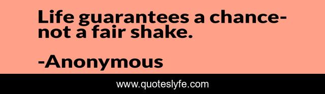 This page presents the quote "Life guarantees a chance-not a fair shake.". Author of this quote is Anonymous. This quote is about realistic, expectations,.