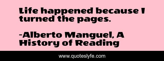 "Alberto Manguel, A History of Reading Quotes." Quoteslyfe.com, 2025. Sun. 07 Dec. 2025. <https://www.quoteslyfe.com/quote/Life-happened-because-I-turned-the-pages-43209>.