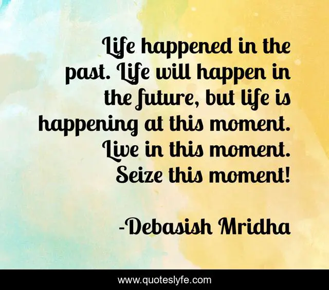 Life happened in the past. Life will happen in the future, but life is happening at this moment. Live in this moment. Seize this moment!