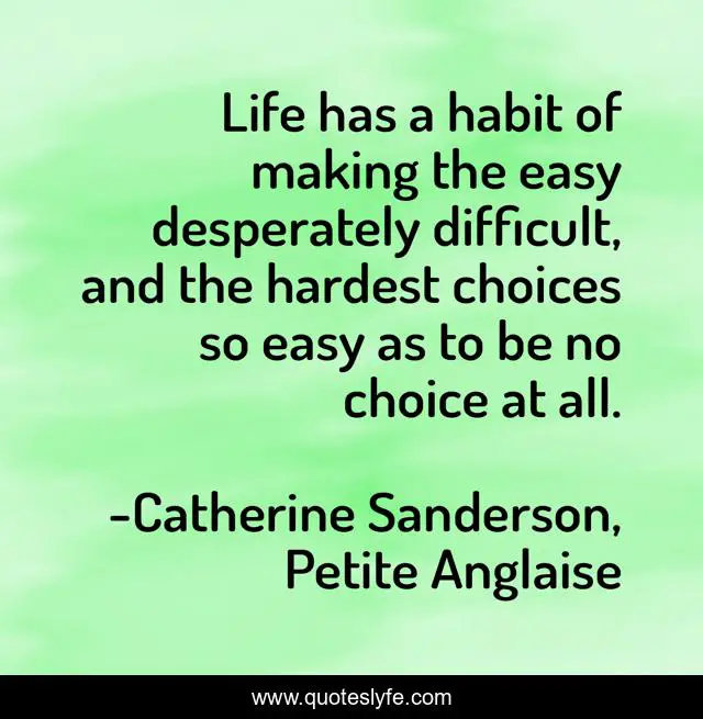 This page presents the quote "Life has a habit of making the easy desperately difficult, and the hardest choices so easy as to be no choice at all.". Author of this quote is Catherine Sanderson, Petite Anglaise. .