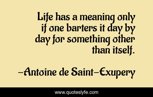 This page presents the quote "Life has a meaning only if one barters it day by day for something other than itself.". Author of this quote is Antoine de Saint-Exupery. .