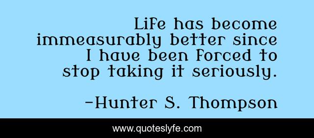 This page presents the quote "Life has become immeasurably better since I have been forced to stop taking it seriously.". Author of this quote is Hunter S. Thompson. .