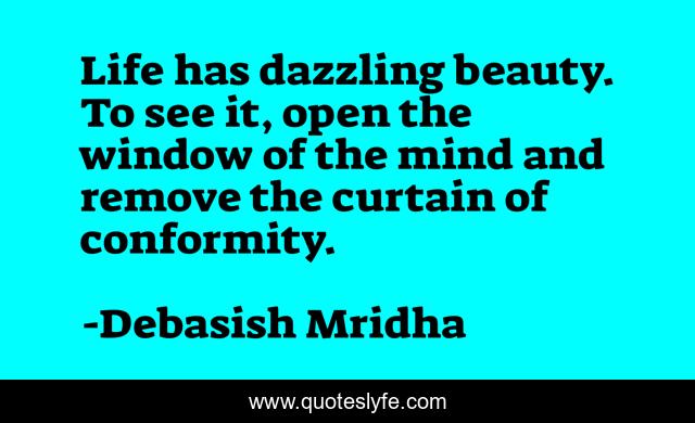 This page presents the quote "Life has dazzling beauty. To see it, open the window of the mind and remove the curtain of conformity.". Author of this quote is Debasish Mridha. This quote is about life, love, knowledge, inspirational, intelligence, philosophy, wisdom, quotes, affection,.
