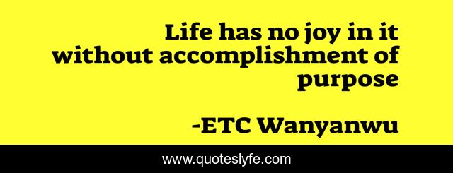 This page presents the quote "Life has no joy in it without accomplishment of purpose". Author of this quote is ETC Wanyanwu. This quote is about confidence, positive, motivational, optimistic, inspirational, enthusiasm,.