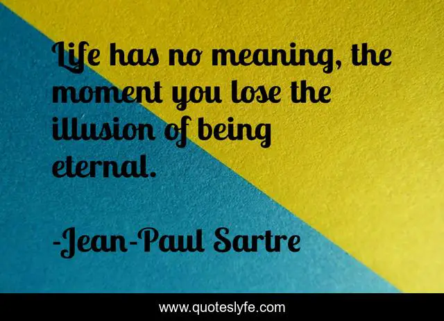 This page presents the quote "Life has no meaning, the moment you lose the illusion of being eternal.". Author of this quote is Jean-Paul Sartre. This quote is about life, eternal,.