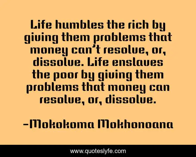 "Mokokoma Mokhonoana Quotes." Quoteslyfe.com, 2025. Mon. 08 Dec. 2025. <https://www.quoteslyfe.com/quote/Life-humbles-the-rich-by-giving-them-213496>.