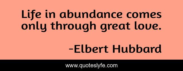 This page presents the quote "Life in abundance comes only through great love.". Author of this quote is Elbert Hubbard. This quote is about abundance, life, love, affection,.