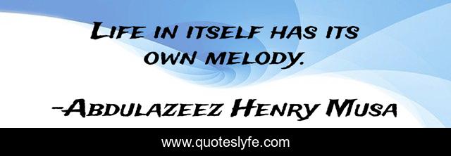 This page presents the quote "Life in itself has its own melody.". Author of this quote is Abdulazeez Henry Musa. .