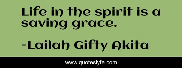 This page presents the quote "Life in the spirit is a saving grace.". Author of this quote is Lailah Gifty Akita. This quote is about living, life, christian, saved-souls, spirit, grace,.