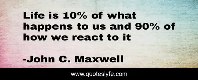 This page presents the quote "Life is 10% of what happens to us and 90% of how we react to it". Author of this quote is John C. Maxwell. .