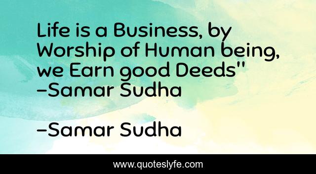 This page presents the quote "Life is a Business, by Worship of Human being, we Earn good Deeds'' -Samar Sudha". Author of this quote is Samar Sudha. This quote is about life, business,.