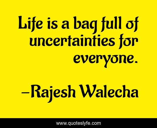 "Rajesh Walecha Quotes." Quoteslyfe.com, 2025. Sun. 07 Dec. 2025. <https://www.quoteslyfe.com/quote/Life-is-a-bag-full-of-uncertainties-130225>.