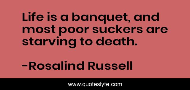 This page presents the quote "Life is a banquet, and most poor suckers are starving to death.". Author of this quote is Rosalind Russell. This quote is about poor, life, life is a,.