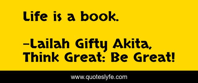 "Lailah Gifty Akita, Think Great: Be Great! Quotes." Quoteslyfe.com, 2025. Mon. 08 Dec. 2025. <https://www.quoteslyfe.com/quote/Life-is-a-book-151069>.