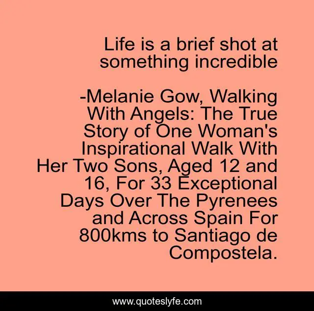 "Melanie Gow, Walking With Angels: The True Story of One Woman's Inspirational Walk With Her Two Sons, Aged 12 and 16, For 33 Exceptional Days Over The Pyrenees and Across Spain For 800kms to Santiago de Compostela. Quotes." Quoteslyfe.com, 2025. Sat. 06 Dec. 2025. <https://www.quoteslyfe.com/quote/Life-is-a-brief-shot-at-something-116255>.