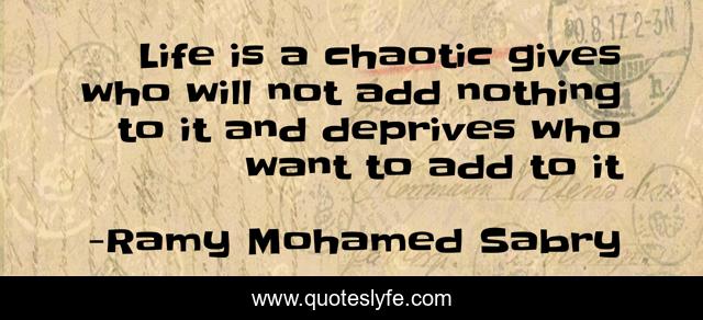 This page presents the quote "Life is a chaotic gives who will not add nothing to it and deprives who want to add to it". Author of this quote is Ramy Mohamed Sabry. .