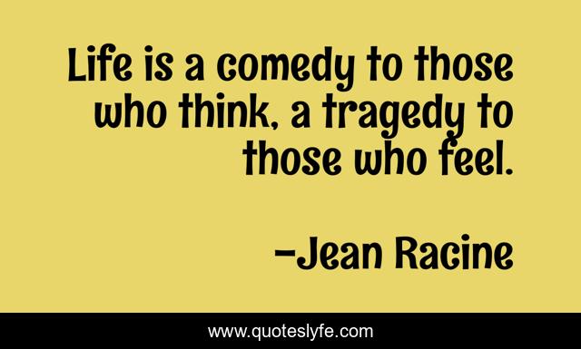 This page presents the quote "Life is a comedy to those who think, a tragedy to those who feel.". Author of this quote is Jean Racine. This quote is about life, comedy, thinking, emotions, feeling, tragedy,.