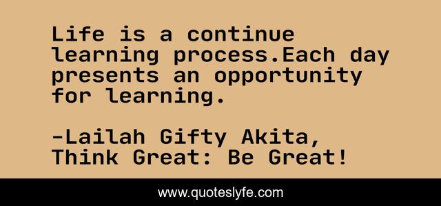"Lailah Gifty Akita, Think Great: Be Great! Quotes." Quoteslyfe.com, 2025. Sat. 13 Dec. 2025. <https://www.quoteslyfe.com/quote/Life-is-a-continue-learning-process-Each-117208>.