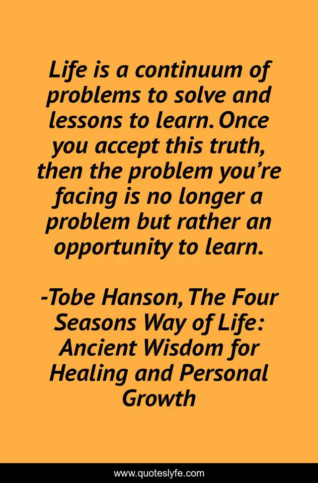 "Tobe Hanson, The Four Seasons Way of Life: Ancient Wisdom for Healing and Personal Growth Quotes." Quoteslyfe.com, 2025. Fri. 05 Dec. 2025. <https://www.quoteslyfe.com/quote/Life-is-a-continuum-of-problems-to-13545>.