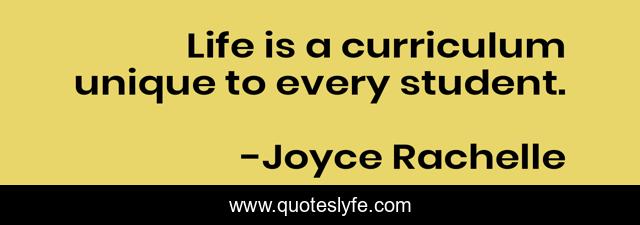 This page presents the quote "Life is a curriculum unique to every student.". Author of this quote is Joyce Rachelle. This quote is about discipline, life, christian, learning, curriculum, christianity, reflections, life-lessons, disciplined-christian,.