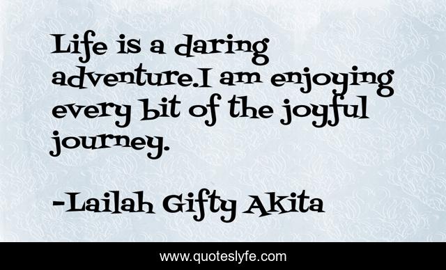 This page presents the quote "Life is a daring adventure.I am enjoying every bit of the joyful journey.". Author of this quote is Lailah Gifty Akita. This quote is about daringness, life, daring, joyfulness, journeys-in-life, joyful-living, daring-greatly, adventure, adventure-fantasy,.