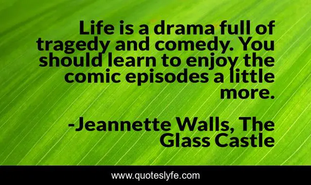 This page presents the quote "Life is a drama full of tragedy and comedy. You should learn to enjoy the comic episodes a little more.". Author of this quote is Jeannette Walls, The Glass Castle. This quote is about life, comedy, tragedy,.