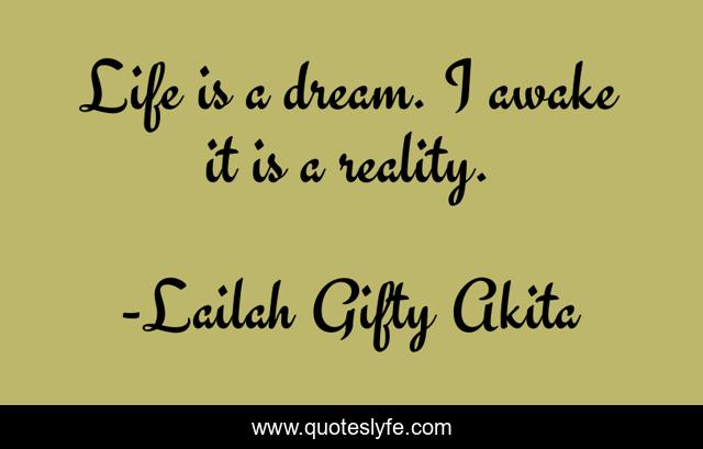 This page presents the quote "Life is a dream. I awake it is a reality.". Author of this quote is Lailah Gifty Akita. This quote is about lailah-gifty-akita, living, life, dream, reality,.