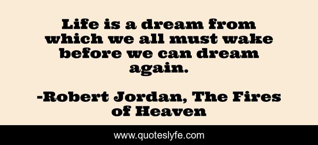 This page presents the quote "Life is a dream from which we all must wake before we can dream again.". Author of this quote is Robert Jordan, The Fires of Heaven. This quote is about life, death-and-dying,.