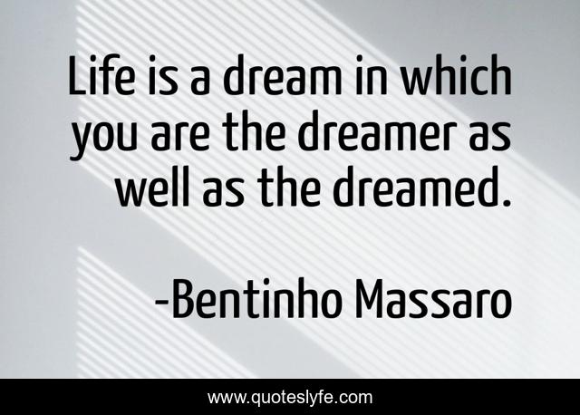 This page presents the quote "Life is a dream in which you are the dreamer as well as the dreamed.". Author of this quote is Bentinho Massaro. This quote is about life, dream,.