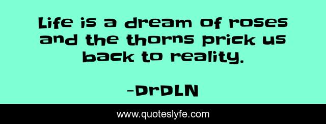This page presents the quote "Life is a dream of roses and the thorns prick us back to reality.". Author of this quote is DrDLN. This quote is about life, healthy-lifestyle, dream-big,.