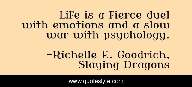 This page presents the quote "Life is a fierce duel with emotions and a slow war with psychology.". Author of this quote is Richelle E. Goodrich, Slaying Dragons. This quote is about life, psychology, richelle-e-goodrich, emotions, richelle, richelle-goodrich,.