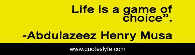 This page presents the quote "Life is a game of choice”.". Author of this quote is Abdulazeez Henry Musa. .
