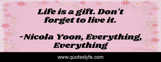 This page presents the quote "Life is a gift. Don't forget to live it.". Author of this quote is Nicola Yoon, Everything, Everything. This quote is about life, love, inspirational, enthusiasm, young-adult, affection,.