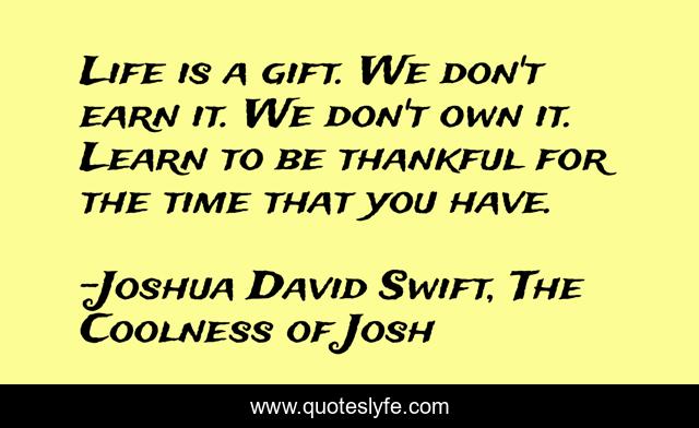 This page presents the quote "Life is a gift. We don't earn it. We don't own it. Learn to be thankful for the time that you have.". Author of this quote is Joshua David Swift, The Coolness of Josh. .