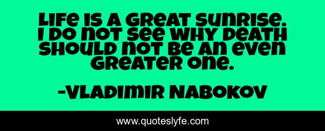 This page presents the quote "Life is a great sunrise. I do not see why death should not be an even greater one.". Author of this quote is Vladimir Nabokov. This quote is about life, great, sunrise,.