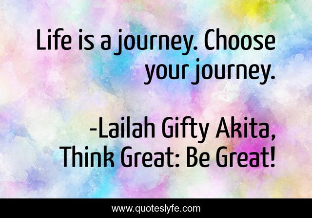 "Lailah Gifty Akita, Think Great: Be Great! Quotes." Quoteslyfe.com, 2025. Mon. 08 Dec. 2025. <https://www.quoteslyfe.com/quote/Life-is-a-journey-Choose-your-journey-140397>.