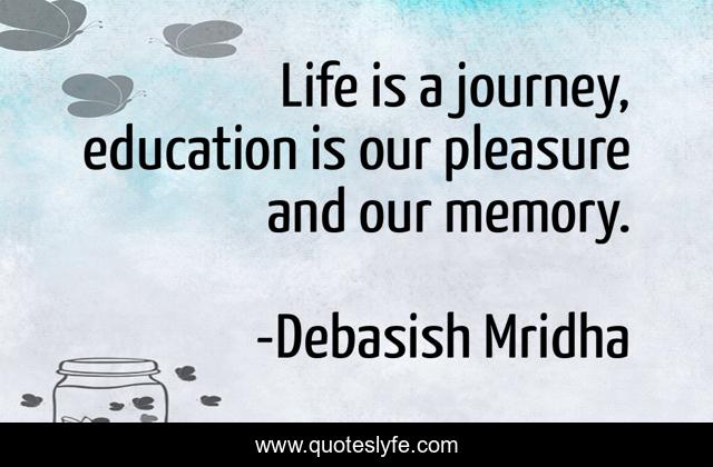 This page presents the quote "Life is a journey, education is our pleasure and our memory.". Author of this quote is Debasish Mridha. This quote is about life, love, knowledge, inspirational, intelligence, philosophy, affection, wisdom, journey,.