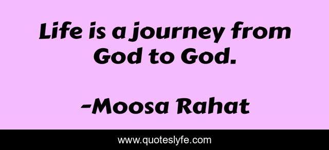 This page presents the quote "Life is a journey from God to God.". Author of this quote is Moosa Rahat. This quote is about god, life, journey,.