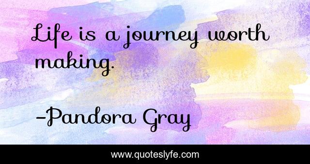 This page presents the quote "Life is a journey worth making.". Author of this quote is Pandora Gray. This quote is about life, love, success, joy, happiness, inspirational, enthusiasm, affection,.