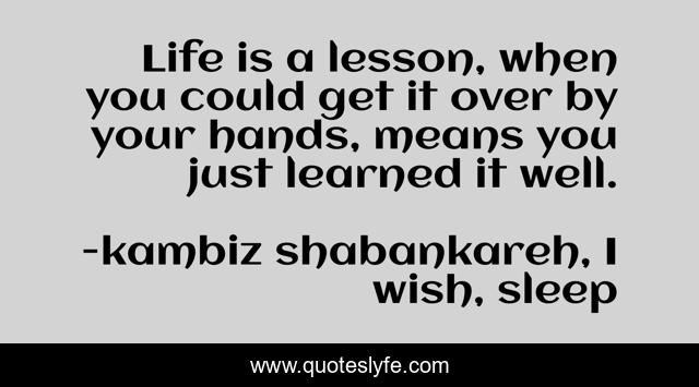"kambiz shabankareh, I wish, sleep Quotes." Quoteslyfe.com, 2025. Sat. 06 Dec. 2025. <https://www.quoteslyfe.com/quote/Life-is-a-lesson-when-you-could-225369>.