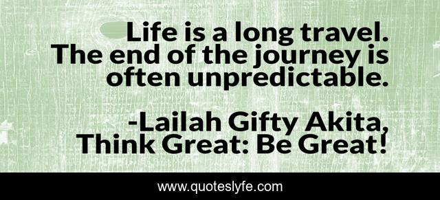"Lailah Gifty Akita, Think Great: Be Great! Quotes." Quoteslyfe.com, 2025. Mon. 08 Dec. 2025. <https://www.quoteslyfe.com/quote/Life-is-a-long-travel-The-end-85404>.