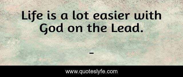 This page presents the quote "Life is a lot easier with God on the Lead.". Author of this quote is . This quote is about edmond-mbiaka, having-god-in-your-life, put-god-on-the-leade,.